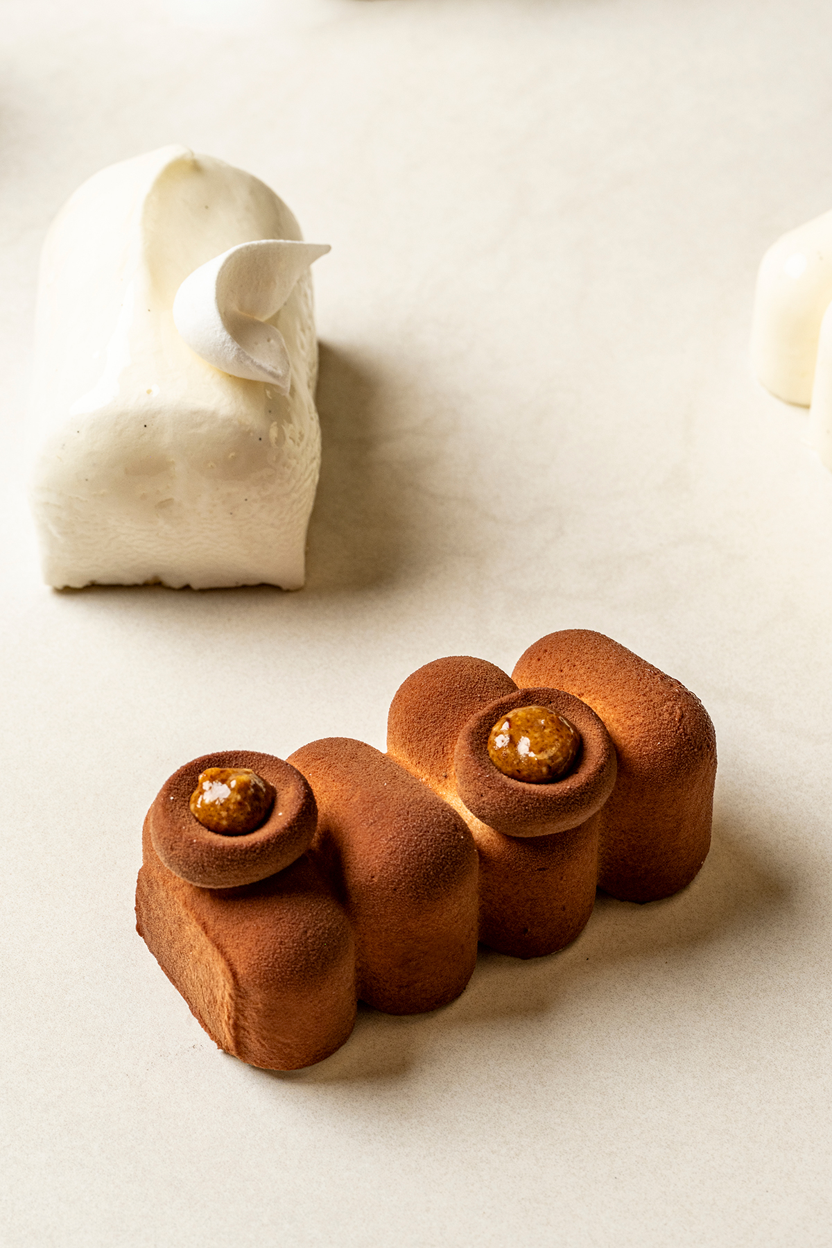 La douceur s’équilibre avec une mousse vanille de Madagascar, tandis qu’une chantilly lactée au chocolat Pérou apporte la touche finale, légère et soyeuse. Le tout repose sur sur un biscuit chocolat moelleux, pour une expérience riche et réconfortante !
