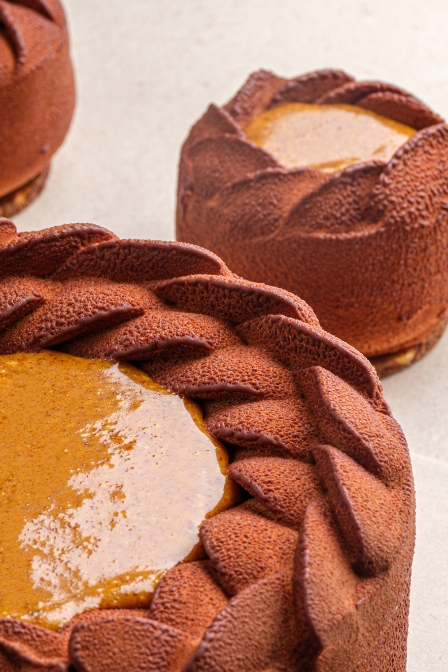Une pâtisserie de caractère, généreuse et subtile, qui joue l’équilibre parfait entre douceur vanillée, profondeur chocolatée et gourmandise de la cacahuète.