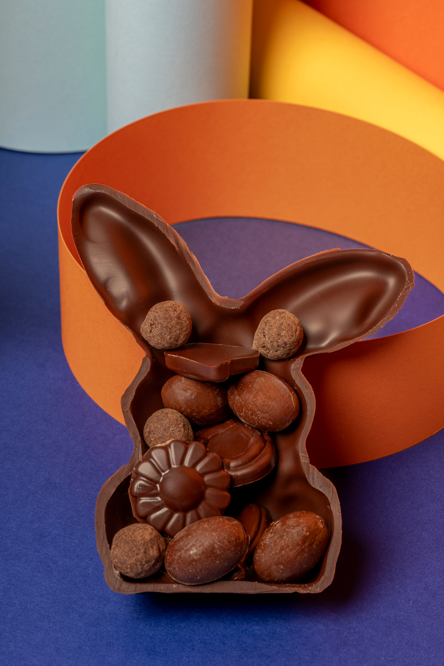 Symbole incontournable de Pâques, notre lapin est entièrement moulé à la main dans notre laboratoire. Réalisé à partir d’un chocolat de grande qualité, il dévoile une texture fondante et des arômes profonds qui séduiront les petits comme les grands gourmands.